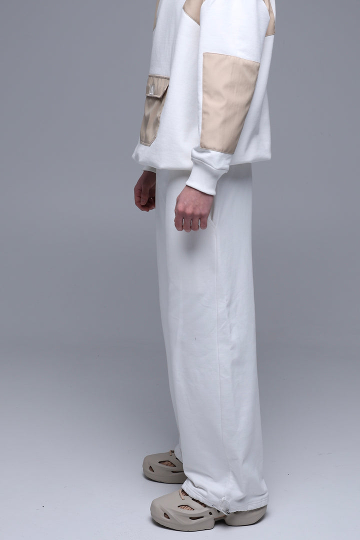 Відчуйте універсальність і витончену елегантність із цими оверсайз штанами світло-молочного кольорів Luxe. Створені для переосмислення спортивної повсякденної вишуканості, вони виготовлені з розкішної суміші бавовни та еластану, що забезпечує ідеальний баланс еластичності та структури. Деталь із темно-сірою кишенею додає тонкий, але виразний контраст, а металеві застібки на подолі дозволяють регулювати об'єм, створюючи розслаблений або звужений силует. У поєднанні з відповідним оверсайз світшотом ці штани стають ключовим елементом капсульної колекції Saint Issa, яка поєднує сучасність, комфорт і витончений спортивний стиль.