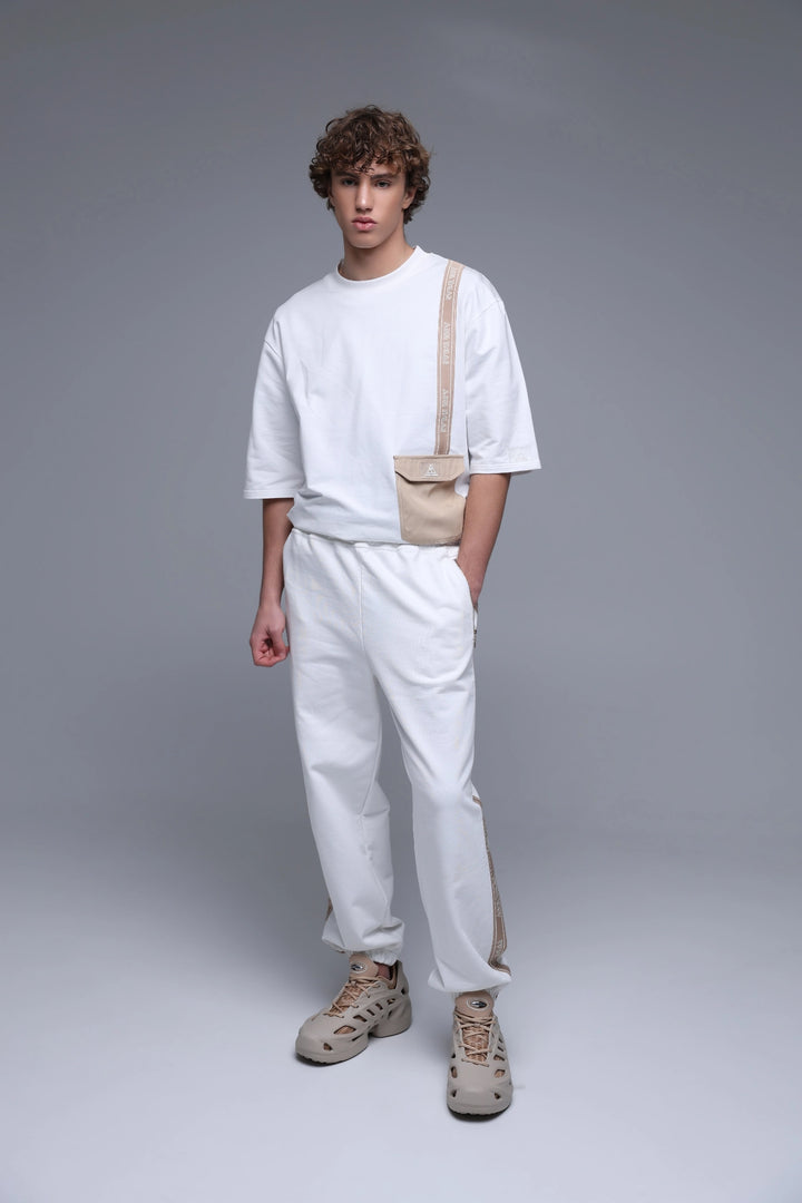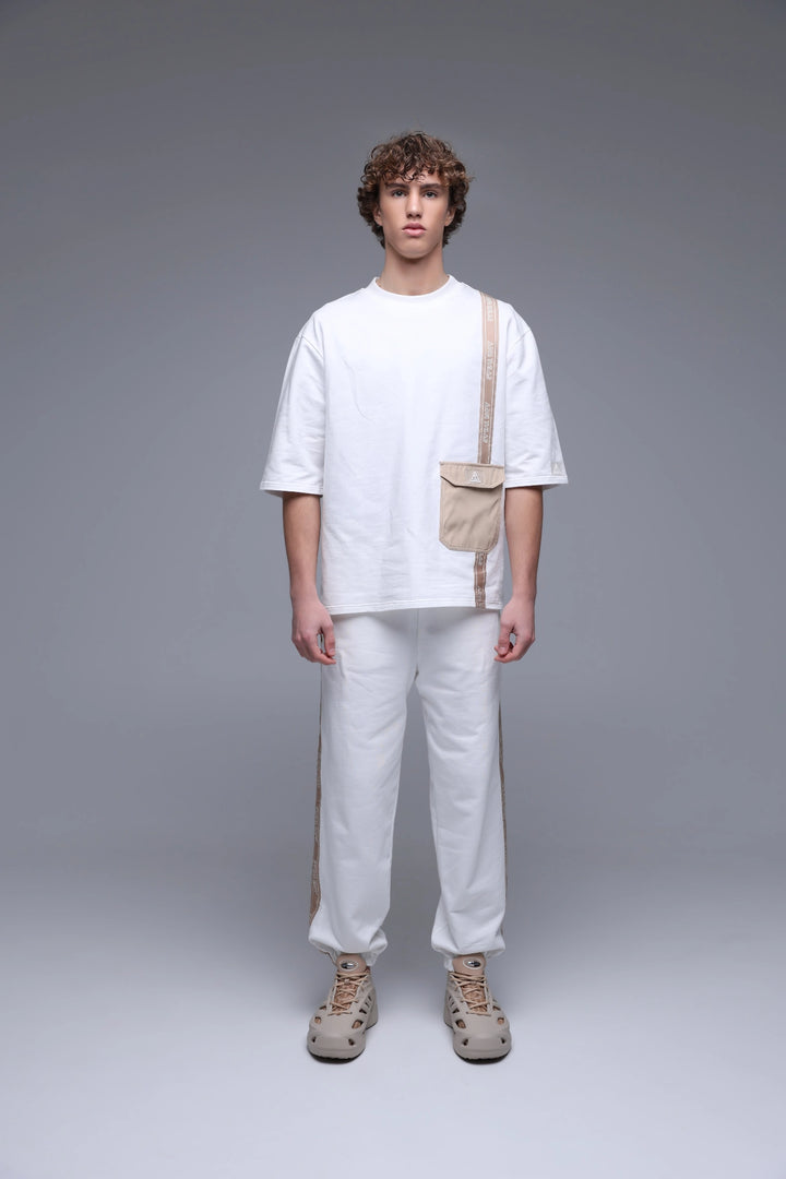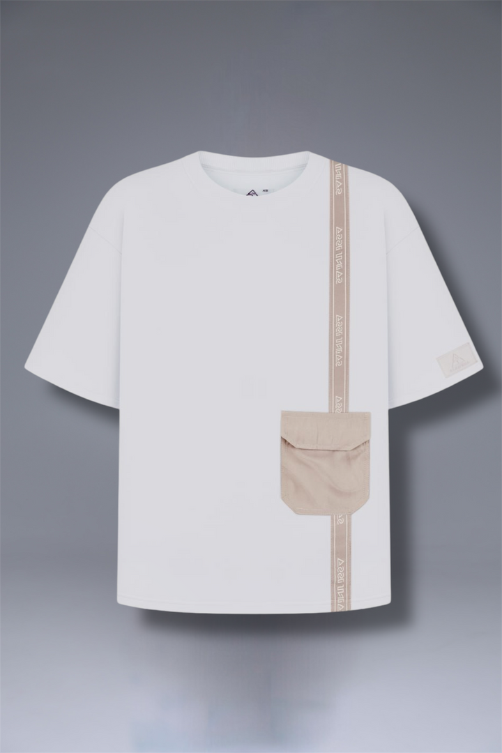 Стильна бежева кишеня з прихованою магнітною застібкою підкреслює елегантність, пропонуючи сучасний і функціональний дизайн без зайвих деталей. Вертикальна смуга додає динамічності, а витончена гумова нашивка з логотипом Saint Issa на рукаві є втіленням витонченого брендингу.